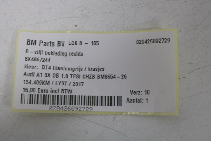 B-stijlbekleding rechts boven Audi A1 8X SB