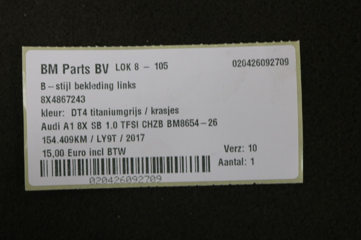 B-stijlbekleding links boven Audi A1 8X SB