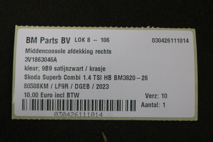 Middenconsole afdekking rechts Skoda Superb 3