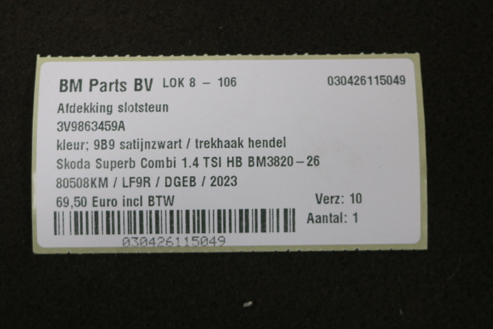 Afdekking slotsteun Skoda Superb combi 3