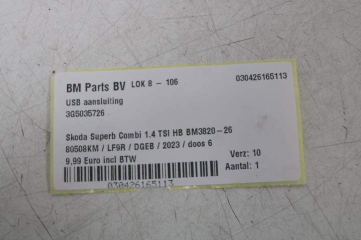 USB aansluiting Skoda Superb 3