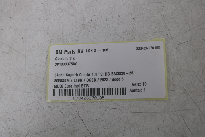 Sleutels 3x Skoda Superb 3