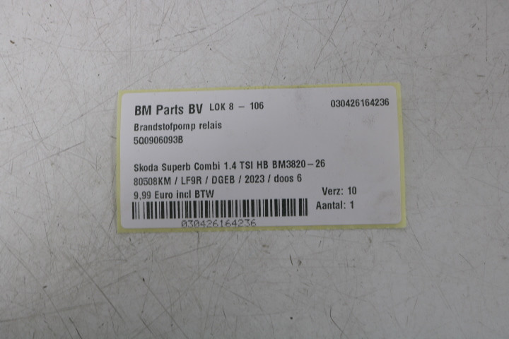 Brandstofpomp relais Skoda Superb 3