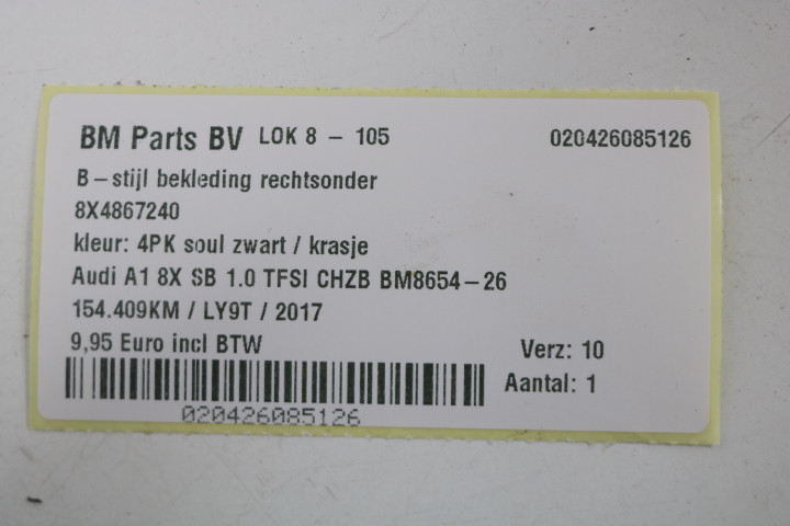 Terug / interieur / Vloer / B Stijl / B-stijlbekleding rechts onder Audi A1 8X SB