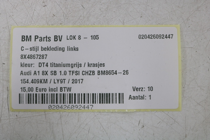 C-stijlbekleding links Audi A1 8X SB