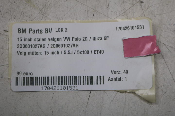 Velg maten: 15 inch / 5.5J / 5x100 / ET40