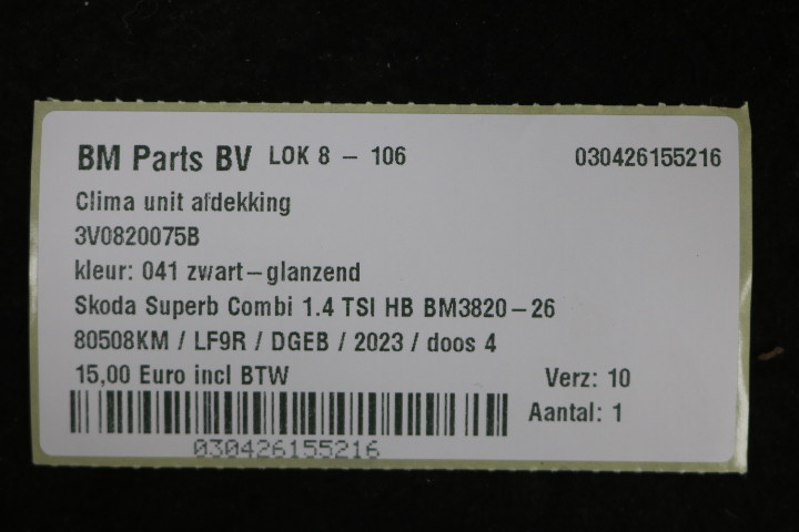 Clima unit afdekking Skoda Superb 3 041