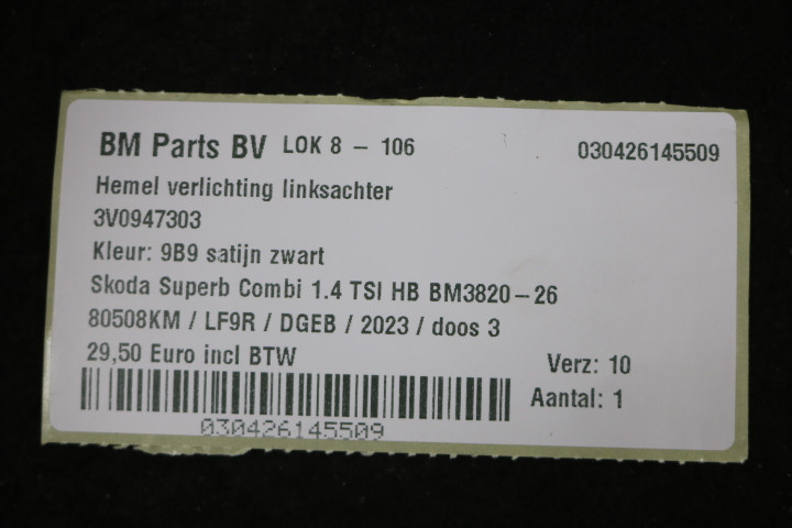 Hemel verlichting linksachter Skoda Superb 3