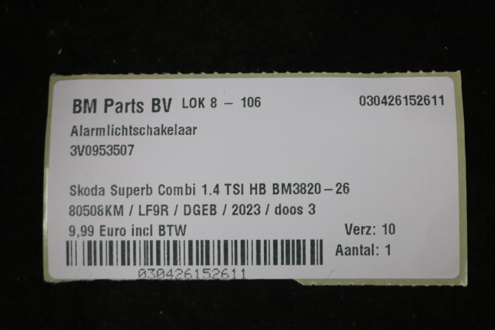 Alarmlichtschakelaar Skoda Superb 3
