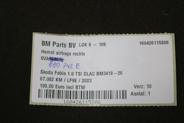 Hemel airbags rechts Skoda Fabia 4