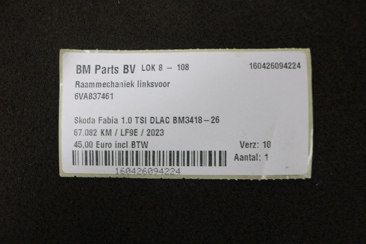 Raammechaniek linksvoor Skoda Fadia 4