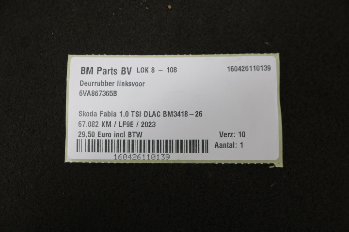 Deurrubber linksvoor Skoda Fabia 4