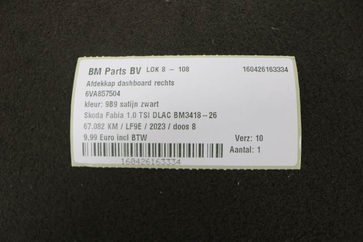 Afdekkap dashboard rechts Skoda Fabia 4