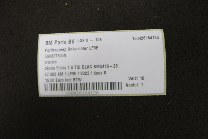 Portiergreep LA LF9E Skoda Fabia 4