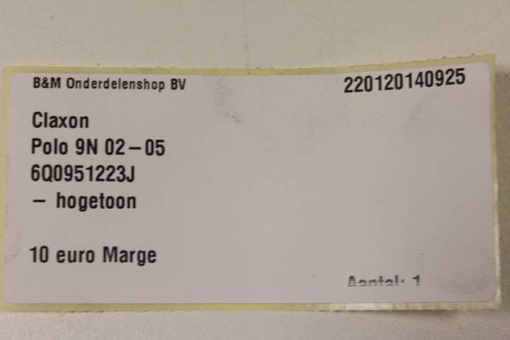 Claxon VW Polo 9N 02-05
